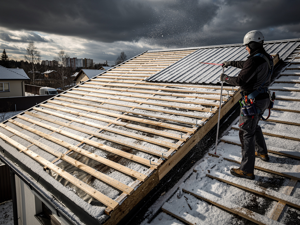 Если профнастил слегка прогибается, но протечек нет, можно установить дополнительные доски обрешётки между существующими. Это требует частичного демонтажа профнастила, но позволяет исправить ситуацию без полной переделки. Правда, нужно подогнать новые доски под существующий профиль, чтобы листы ложились ровно.