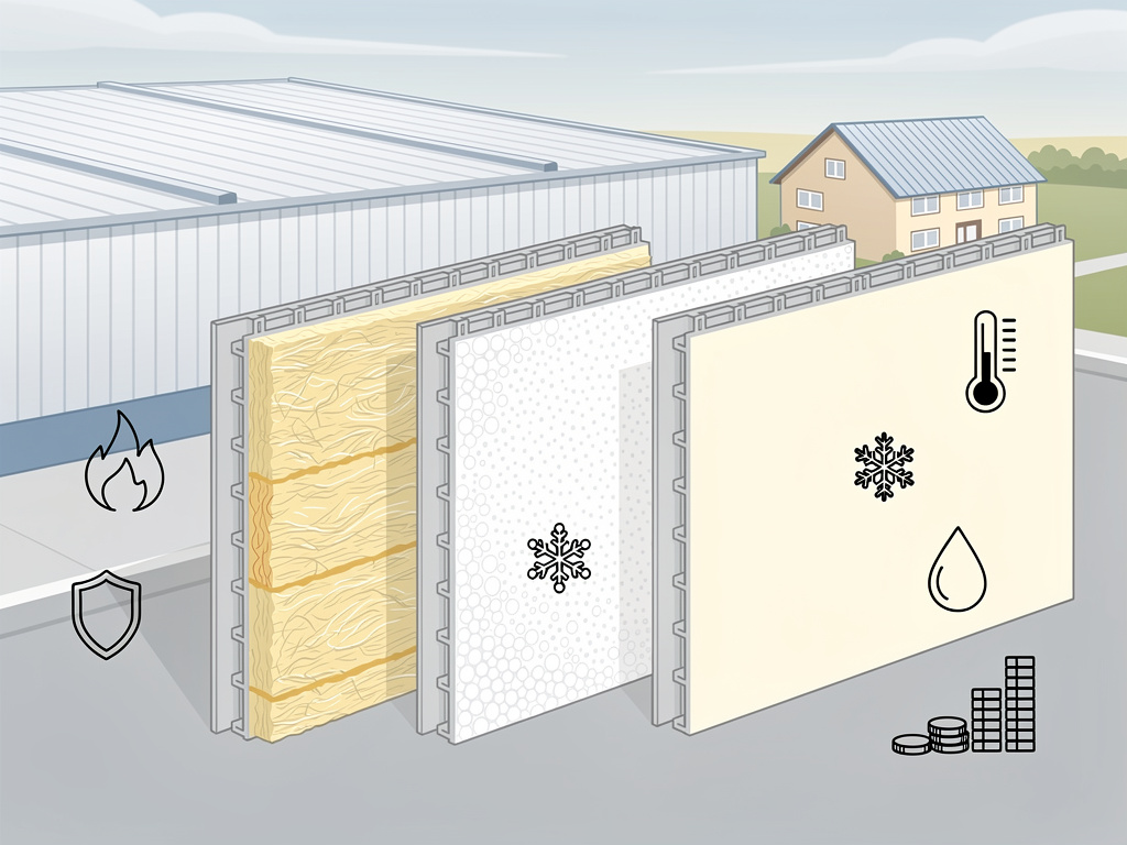 Сэндвич-панели — это готовые конструкции из двух листов металла с утеплителем внутри. Выбор зависит от утеплителя: минеральная вата, пенополистирол или пенополиуретан. Каждый вариант решает свои задачи. Разберём по порядку плюсы, минусы и где применять.