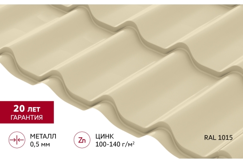 Металлочерепица Классик ("Classic") v01 0,5 Satin RAL 1015 светлая слоновая кость