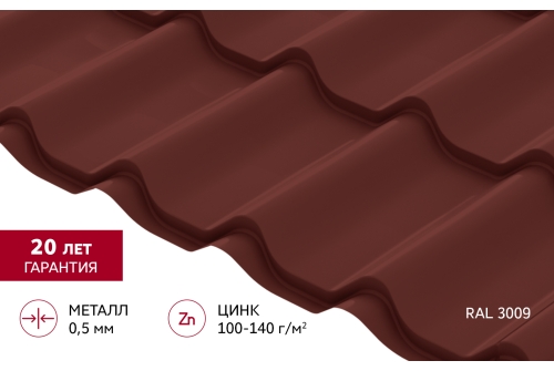 Металлочерепица Классик ("Classic") v01 0,5 Satin RAL 3009 оксидно-красный