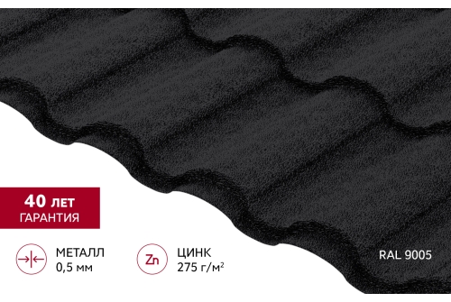 Металлочерепица "Кредо" ("Kredo") v01 0,5 PurPro Matt 275 RAL 9005 черный