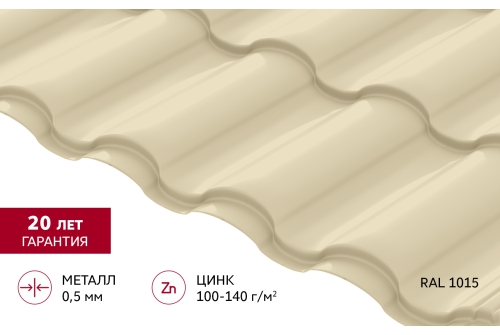 Металлочерепица "Кредо" ("Kredo") v01 0,5 Satin RAL 1015 светлая слоновая кость