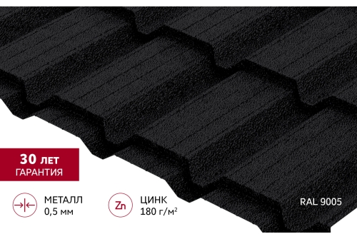 Металлочерепица "Квадро профи" ("Quadro Profi") v02 0,5 PurLite Matt RAL 9005 черный