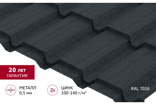 Металлочерепица "Квадро профи (Верховье)" ("Quadro Profi") v01 0,5 Drap RAL 7016 антрацитово-серый