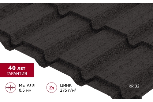 Металлочерепица "Квадро профи (Верховье)" ("Quadro Profi") v01 0,5 PurPro Matt 275 RR 32 темно-коричневый