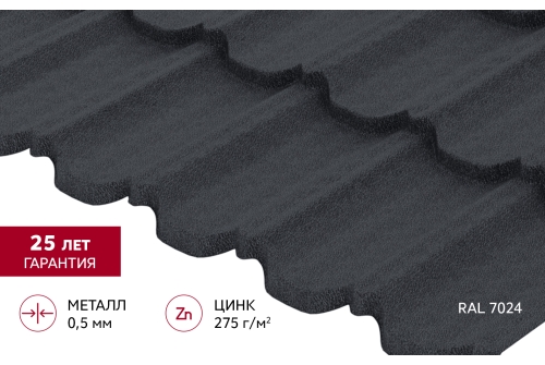 Металлочерепица "Квинта плюс3D" ("Kvinta plus3D") 0,5 Velur X RAL 7024 мокрый асфальт