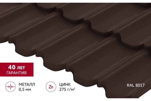 Металлочерепица "Квинта Уно" ("Kvinta Uno") 0,5 PurPro RAL 8017 шоколад