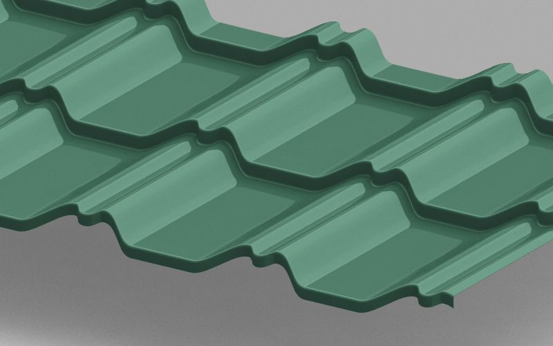 - Цвет: RAL 5021, насыщенный бирюзовый оттенок, придающий крыше выразительность и стиль.