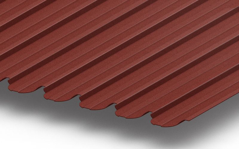 - Эстетическая привлекательность: Матовый финиш и насыщенный цвет RAL 8004 придают профнастилу современный и стильный вид.