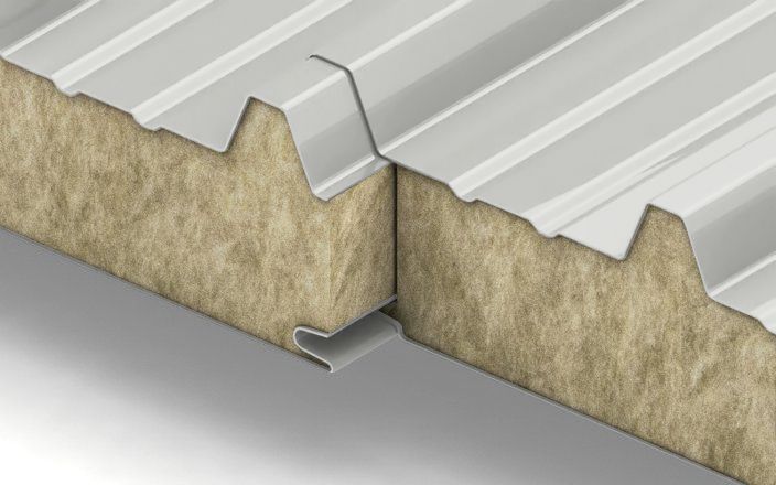 Кровельные сэндвич-панели с наполнителем из минеральной ваты толщиной 100 мм, цвет RAL 7035, ГОСТ 32603-2021